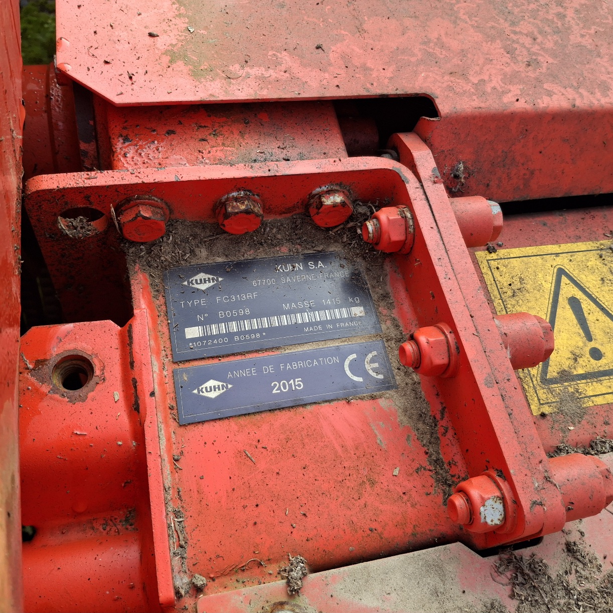 TIPOLOGIA FALCIACONDIZIONATRICE FRONTALE MARCA KUHN MODELLO FC313RF TARGA 22.149 ANNO 2015 MASSA 1415 KG MATRICOLA B0598