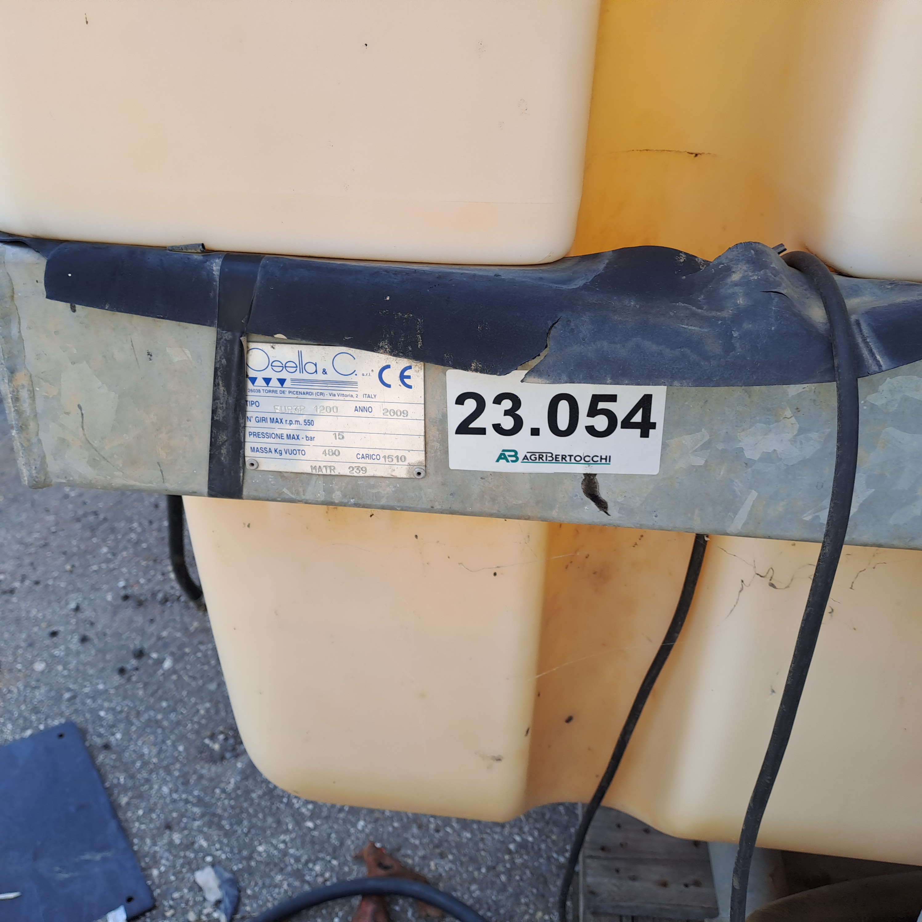 MARCA : OSELLA MODELLO: 3P 1200 ANNO: 2009 MASSA A VUOTO: 480KG MASSA A PIENO: 1510 KG PRESSIONE MASSIMA DI ESERCIZIO : 15 BAR TARGA INTERNA: 23.054