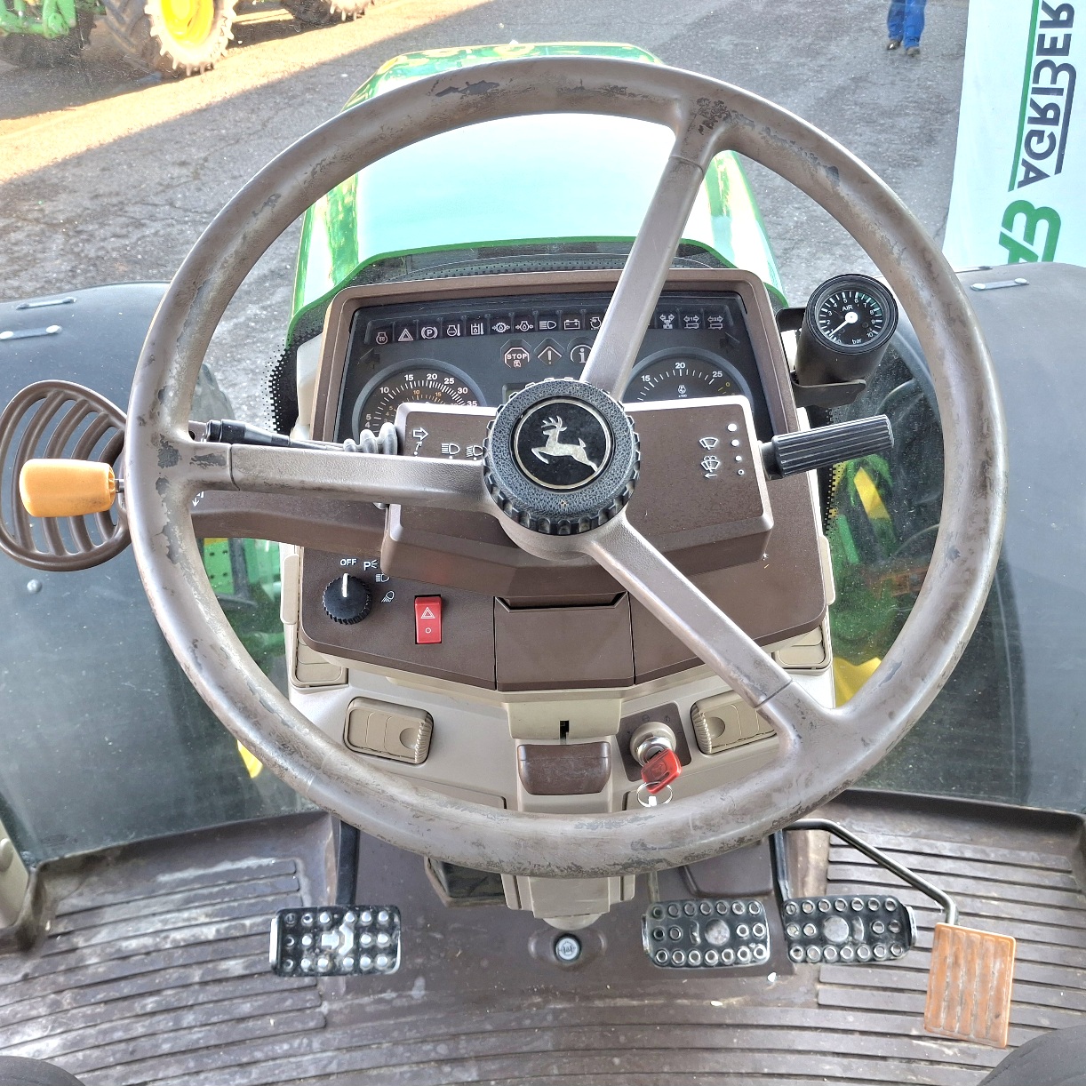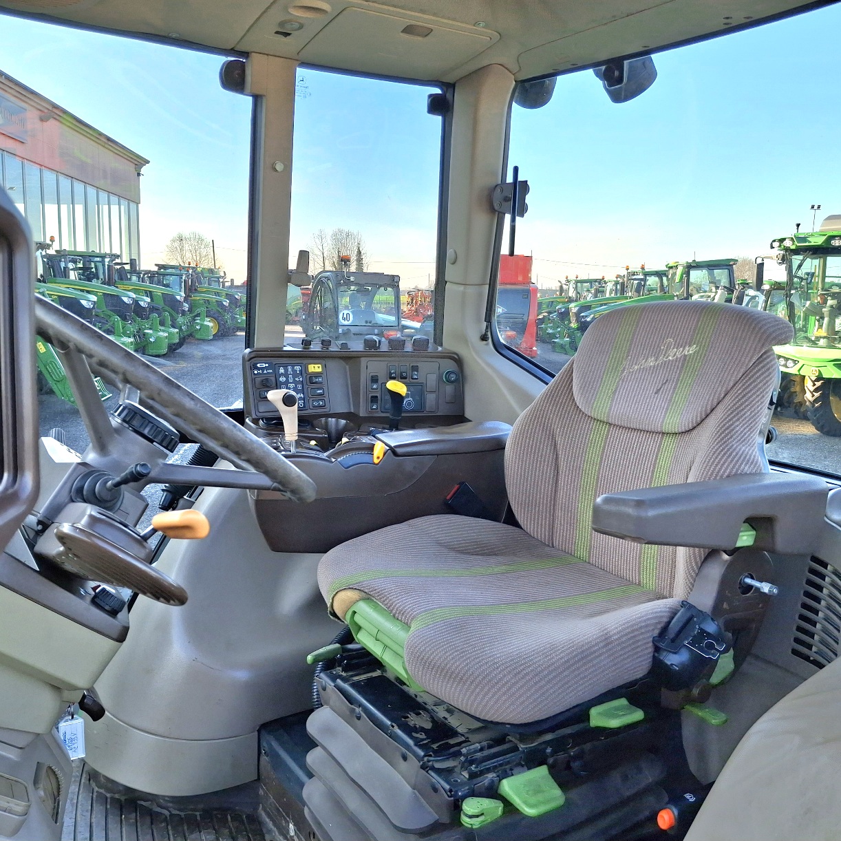 MODELLO 6920 S MOTORE JOHN DEERE 6 CILINDRI 6788 CC POTENZA 171 CV TRASMISSIONE VARIAZIONE CONTINUA ANNO 2005 ORE LAVORATE 6921 PNEUMATICI ANTERIORI 540/65 R28 RESIDUO 15% POSTERIORI 650/65 RESIDUO 40% ACCESSORI POTENZA PTO 540/540E/ 1000 SOLLEVATORE ANTERIORE, FRENATURA AD ARIA PER CARELLI E RIMORCHI DOVE PREVISTA, 4 DISTRIBUTORI IDRAULICI, PTO ANTERIORE CRITICITA' ALCUNE VOLTE SI ACCENDE LA SPIA DELL'ALTERNATORE, RIVENSTIMENTO INTERNO DISCUTIBILE, PNEUMATICI ANTERIORI DA SOSTITUIRE TARGA AZ933V