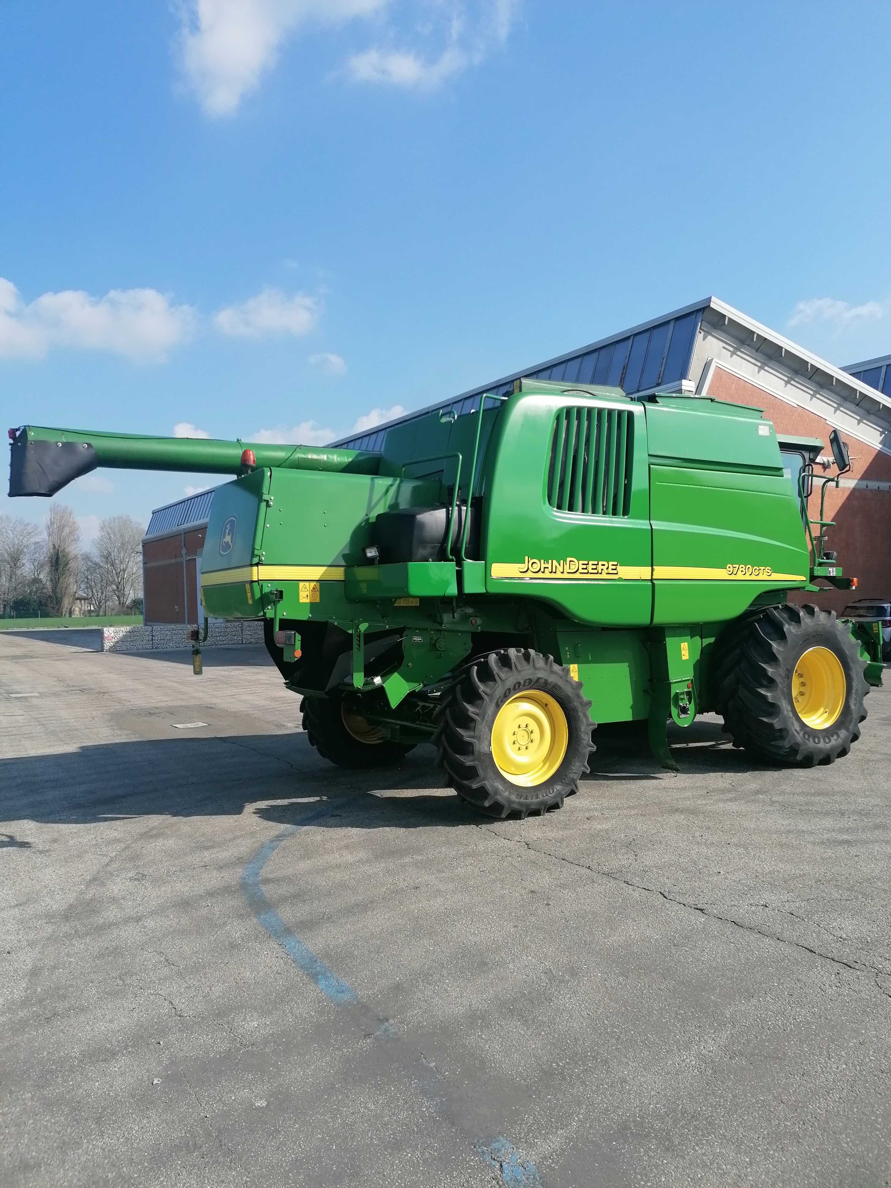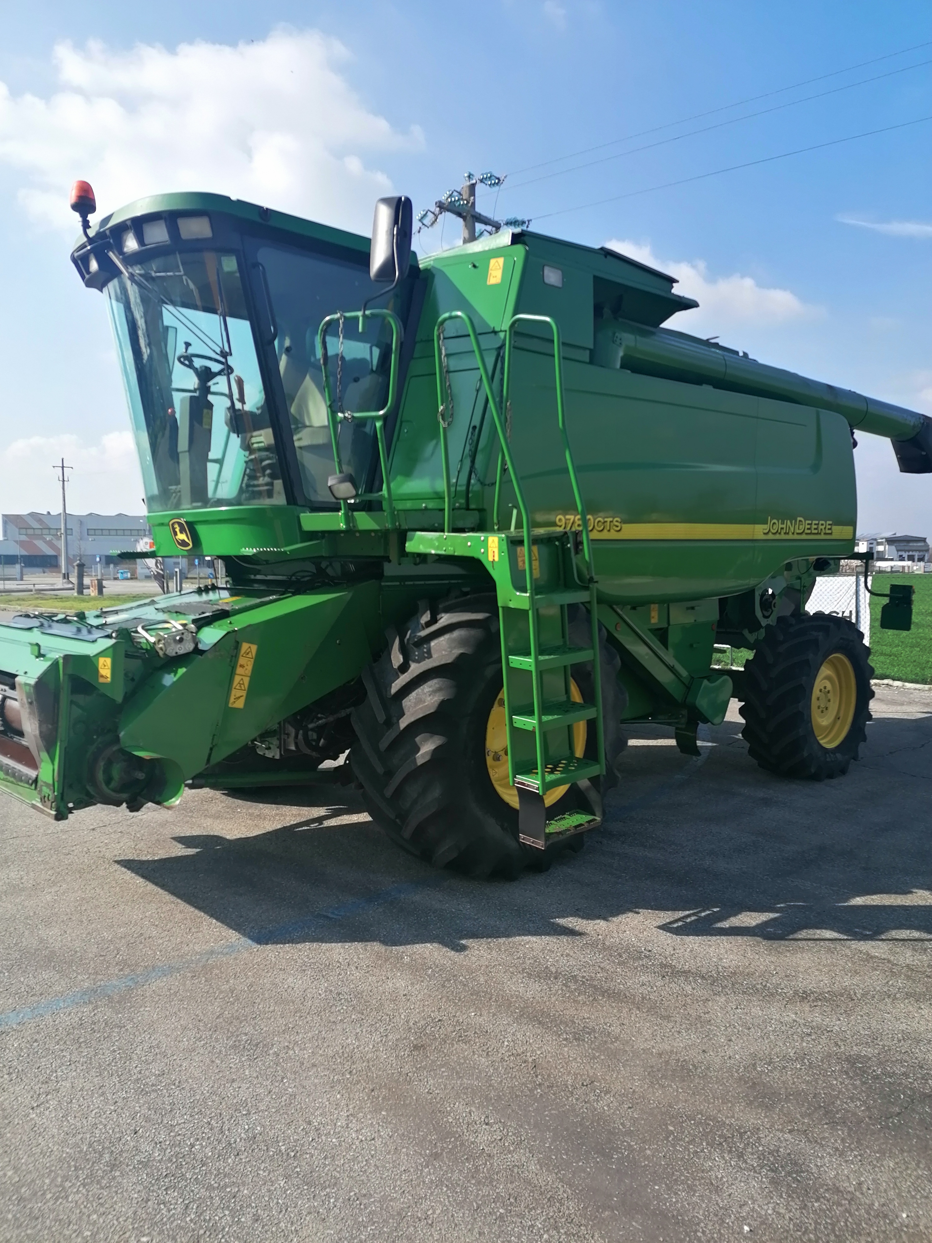 JOHN DEERE CTS 9780 ORE MOTORE 4130 ORE ROTTORE 2500 MOTORE 6 CILINDRI JOHN DEERE PNEUMATICI USURATI AL 30% ACCESSORI, CABINA CON ARIA CONDIZIONATA, SENSORE RESA UMIDITA, BARRA DA 6MT, CARRELLINO PORTA BARRA