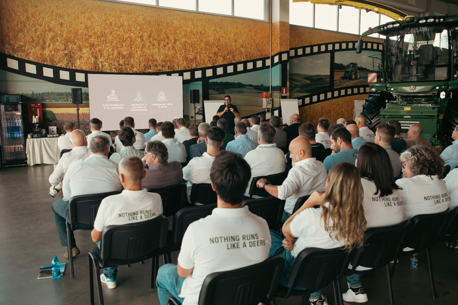 Il giorno successivo, il programma si è concluso con un evento in campo esclusivo dedicato ai clienti Agribertocchi, che hanno potuto assistere a dimostrazioni pratiche, test operativi e approfondimenti tecnici direttamente sulle trince John Deere oggetto del training.