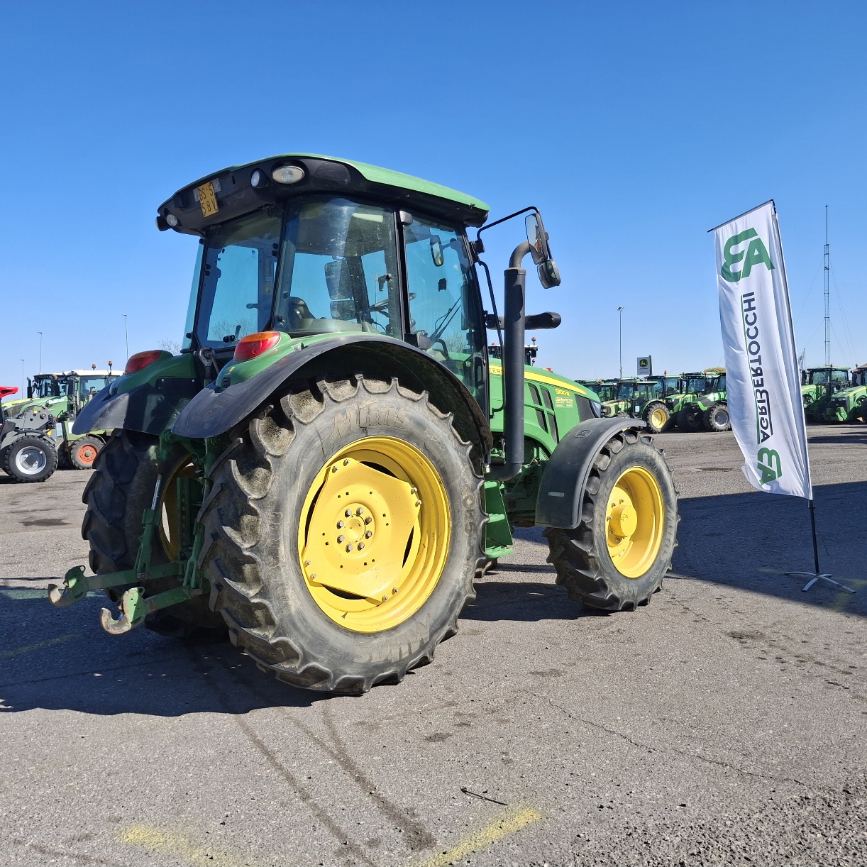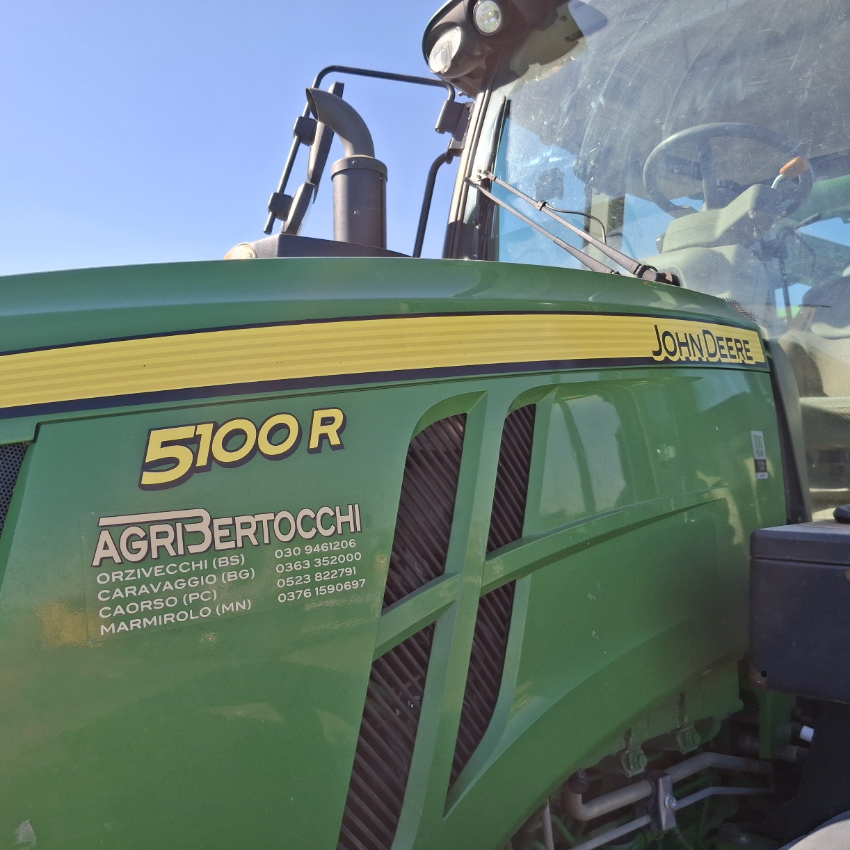 MODELLO 5100 R MOTORE JOHN DEERE 4 CILINDRI 4525 CC POTENZA 120 CV TRASMISSIONE MECCANICA (4 MEZZE MARCE SOTTOCARICO) INVERSORE ELETTROIDRAULICO ANNO 2011 ORE LAVORATE 12.950 PNEUMATICI 13.6 R 24 DA SOSTITUIRE POSTERIORI 340/85 R 38 RESIDUO 60% ACCESSORI SOLLEVATORE ANTERIORE, FRENATURA ADA ARIA PER CARRELLI E RIMORCHI CHE LA PREVEDANO CRITICITA' POMPA DI CARICO DA REVISIONARE, MOTORE CON POCA ACCELERAZIONE TARGA BJ295B