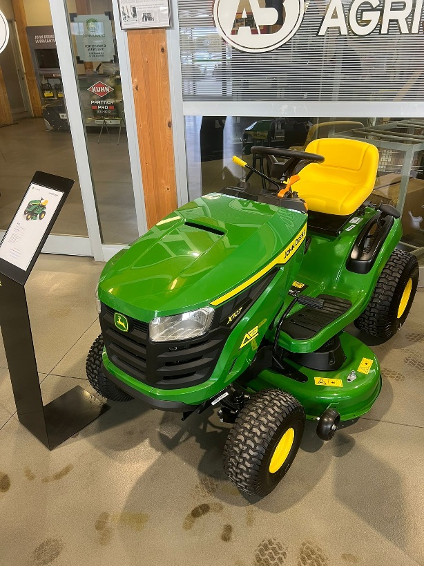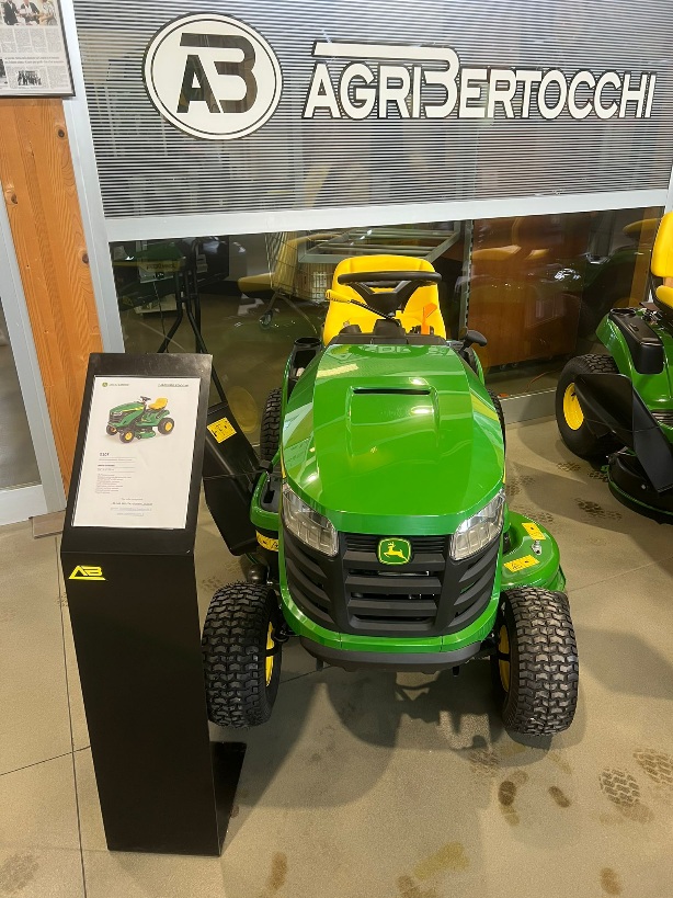 TRATTORINO TAGLIAERBA MARCA: JOHN DEERE MODELLO: X107 MOTORE BENZINA MONOCILINDRICO DA 11,4 KW VELOCITA' DI AVANZAMENTO 8,9 KM/H LARGHEZZA PIATTO 107 CM SISTEMA DI RACCOLTA E KIT MULCING OPZIONALE