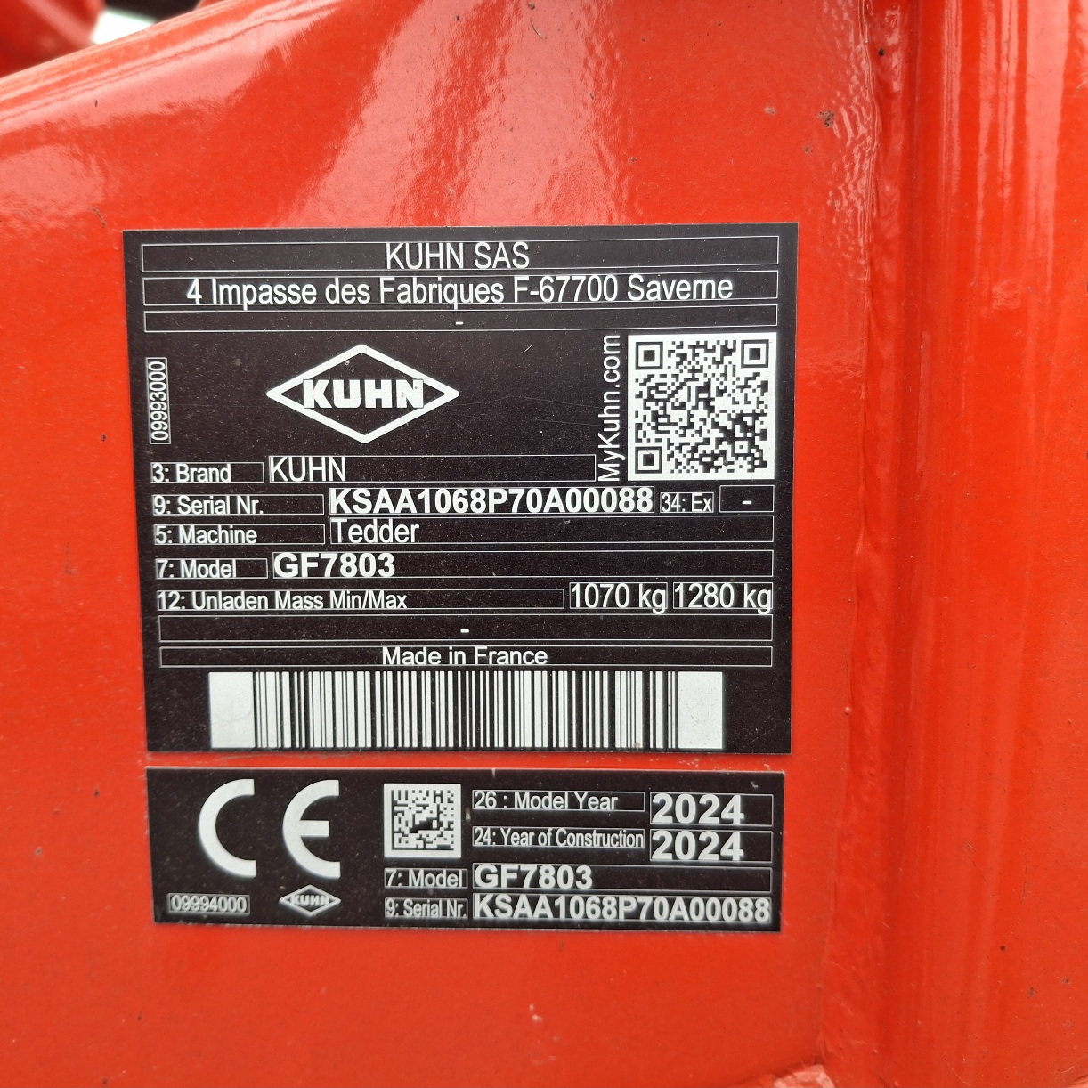 VOLTAFIENO KUHN GF 7803 ANNO 2024 PESO 1280 KG MACCHINA IN OTTIME CONDIZIONI, PARI AL NUOVO.